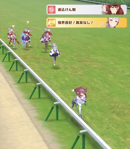 初日にはそこまで気にしなかったゴールドシップの前詰まりが頻発した(ちなみにナリタタイシンは初日から前詰まりが多く,ムラの多いウマ娘だなとは感じていました)理由を考えると,やはり浮かび上がるのは「視界良好!異常なし!」の有無です。
