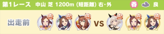 バ場状態も5レースでそれぞれ抽選されます。こちらは天候よりも偏りが激しく,ほとんどが良バ場となりました。取得するのであれば一択だと思います。