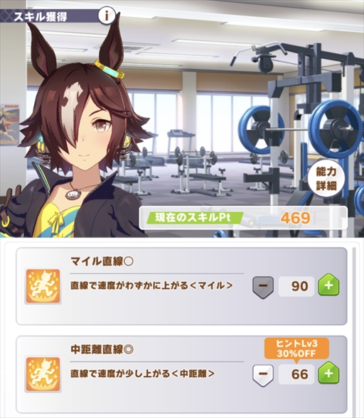 こちらはガチ育成時のパターンですが,習得したいスキルが2種類以上ある場合は,ヒントを獲得したスキルを潰していくほうがメリットが大きいように思います。